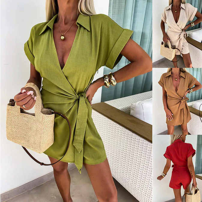 💕Women's Cotton Linen V-neck Jumpsuit - Light, Breathable & Elegant for Every Summer Occasion